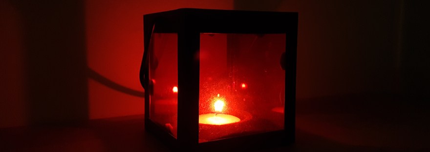 I strike a match and the flame jumps as if just woken from a long nap and then, gently, I lower the flame to the crooked wick of the candle, hunched over and tired from past sessions. The flame catches slowly and begins to rise. Its head begins peeking up over the edge of the crimson glass panels in the lantern in which the stubby mess of wax sits nestled snuggly in its place. The room around me is now bathed in an eerie glow from the flame which wobbles about drunkenly. A small bit of broken wick sits on top of the stub, an out of place freckle on an otherwise pristine white. The smell of sulfur and laundry fill the air as the scented candle begins to burn hotter and I remember cold evenings long ago I had long since forgotten. I take one final look at the flame which now whimpers softly and I blow it out, immersing myself in darkness. The moment is gone and I laugh silently as the last wisp of smoke fades into nothing.