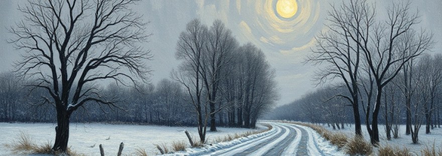 The trees stand there naked, all twiggy and cold,